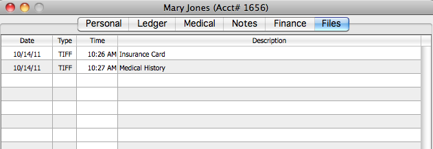 To view files for a patient, choose the FILES tab in the Patient Information screen.
